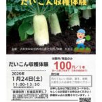 杉並区井草 1/24開催 『だいこん収穫体験』 開催日:令和8年1月24日(土) 予備日:雨天時:順延で翌25日(日)に開催 1/23日昼に決定しま...