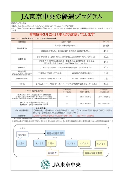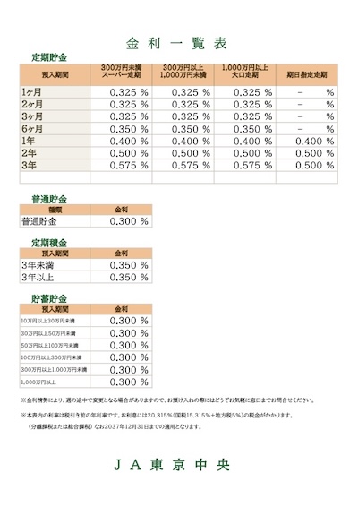 | 特典2 | お得な金利「JAすこやか定期貯金500」店頭表示金利+年0.150%上乗せ。 お一人様500万円まで店頭表示金利+0.150%の「JAすこやか定期貯金500」をご利用いただくことができます。(期間1年・元金自動継続式)